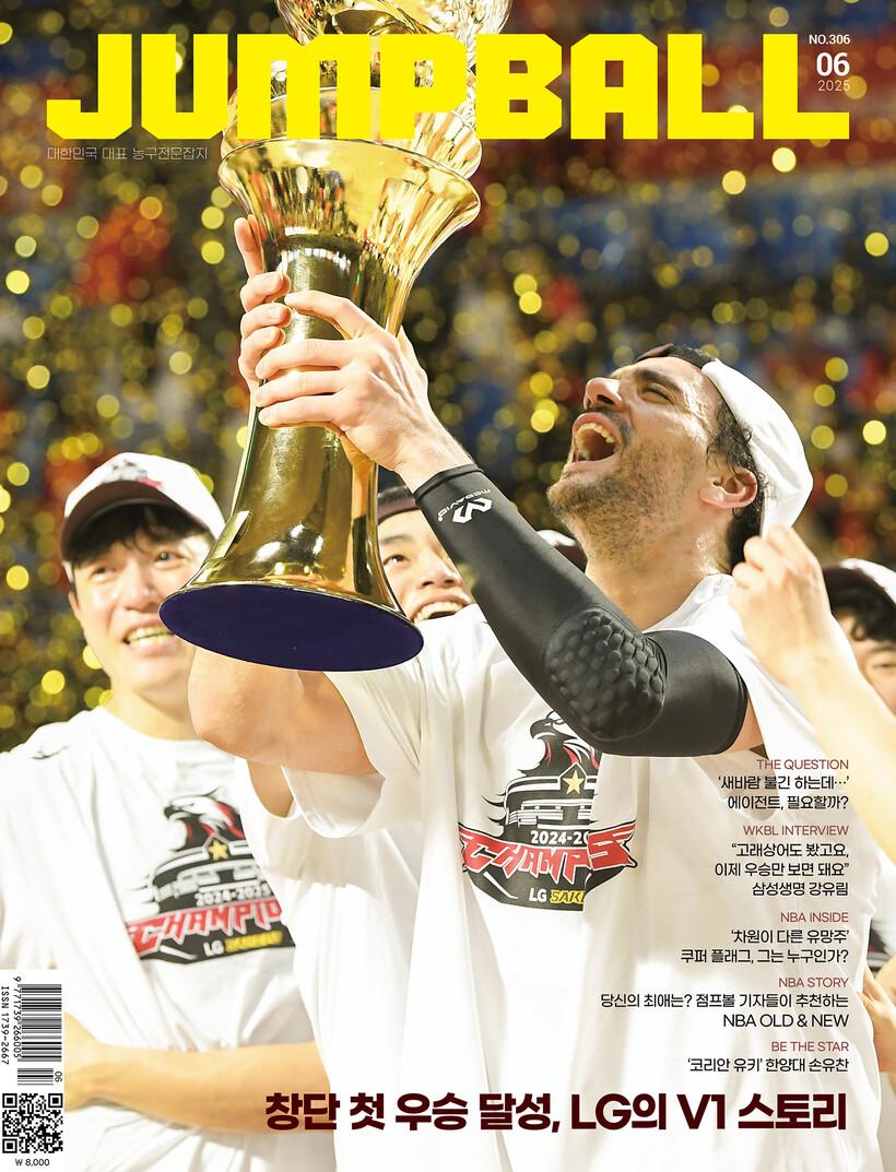 LG 우승 분위기와 선수들의 승리의 순간을 생생하게 담아냈을 뿐만 아니라, 팬들에게 강렬한 감정을 전달하며 잡지 구매 욕구를 크게 자극했기 때문이다. 팀의 역사적인 순간을 시각적으로 잘 포착해, 팬들과 독자들이 표지만으로도 우승의 기쁨을 언제든지 함께 느낄 수 있게 만든 점이 인상적이었다. 또한, 언제 다시 찾아올지 모르는 우승 기념 잡지라는 상징성을 강조하면서 농구 팬뿐만 아니라 일반 독자들에게도 눈길을 끌지 않았을까 한다. 우승의 순간을 한 장의 이미지로 담아내는 데 성공한 이 표지는, 단순 잡지 표지를 넘어 LG의 역사적 순간을 기록한 의미 있는 장면으로 기억될 것 같다.