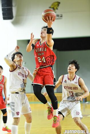 [점프볼=안암/유용우 기자] 10일 고려대 화정체육관에서 열린 2024 KUSF 대학농구 U-리그 고려대와 경희대의 경기, 고려대 이동근이 리바운드를 잡고 있다.