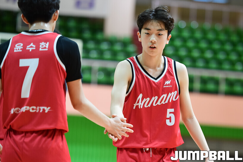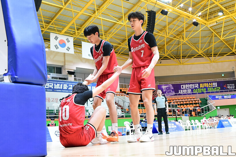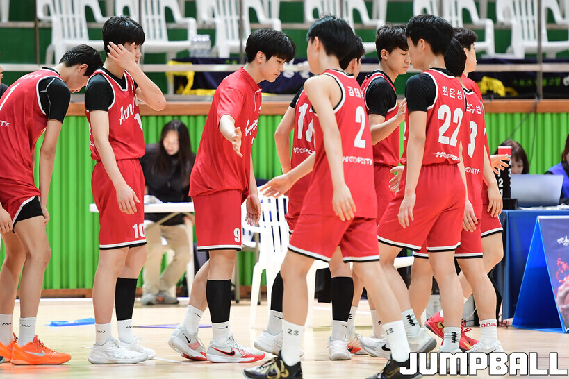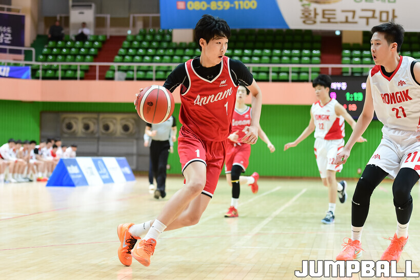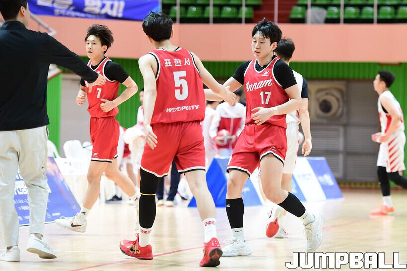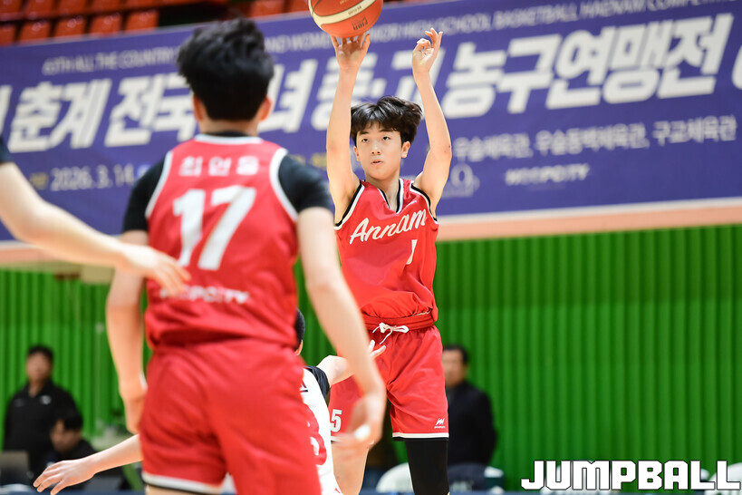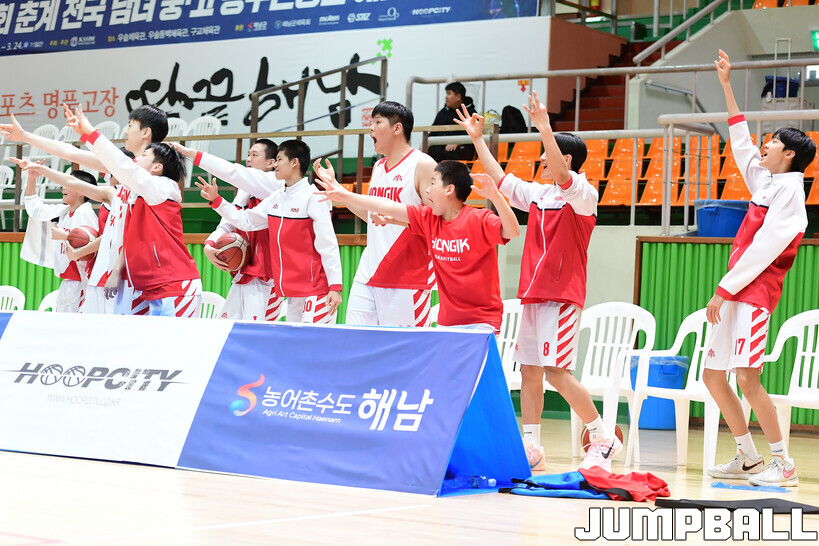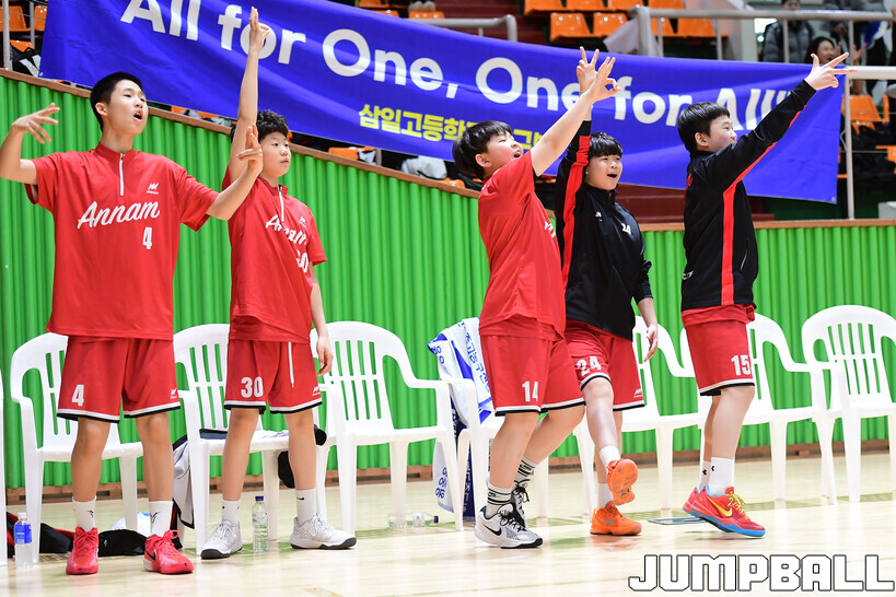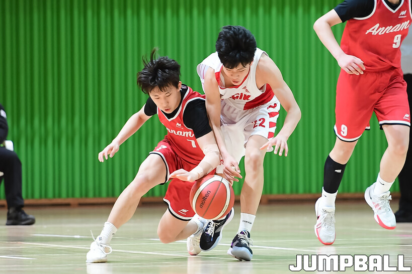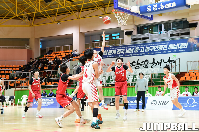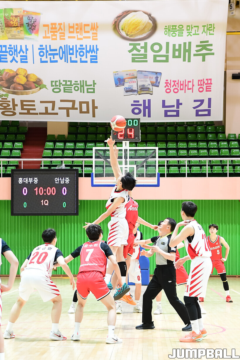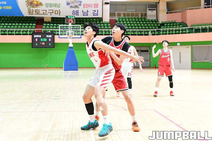 [점프볼=해남/박상혁 기자] 20일 해남 우슬체육관에서 열린 제63회 춘계 전국남녀중고농구연맹전 해남대회 홍대부중과 안남중의 경기, 안남중이 홍대부중에 86-46으로 승리했다.