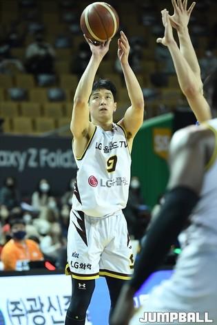 5일 잠실실내체육관에서 열린 2021~2022 KGC인삼공사 정관장 프로농구 서울 삼성과 창원 LG의 경기, 삼성 김동량이 슛을 던지고 있다.