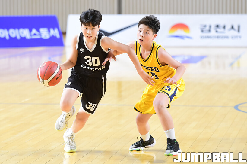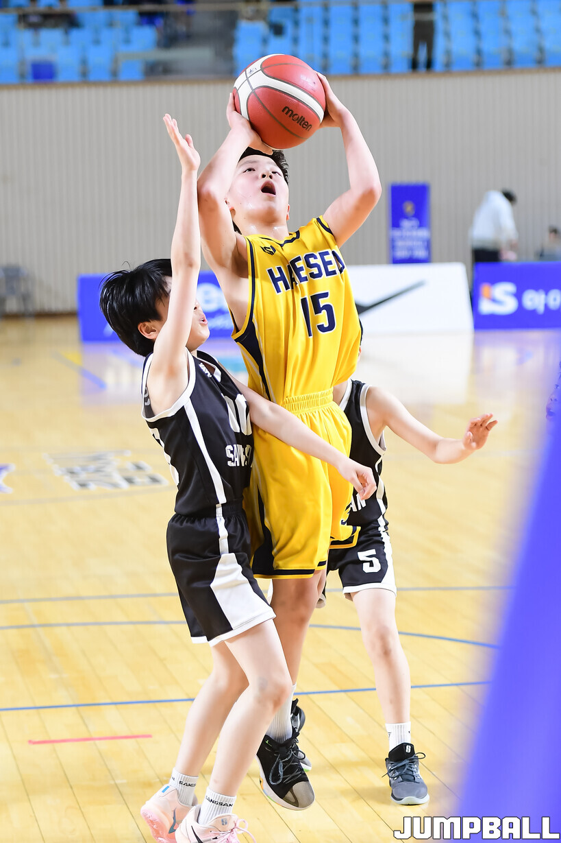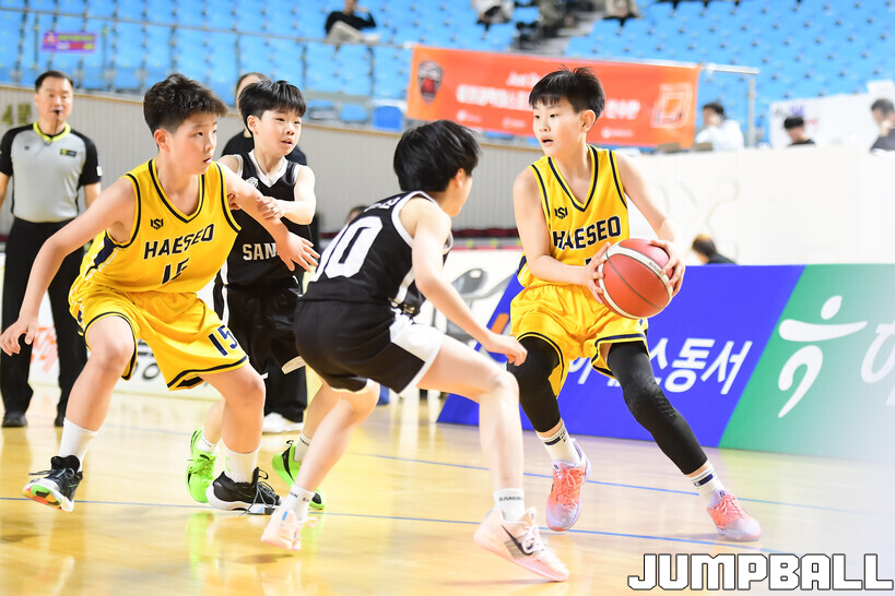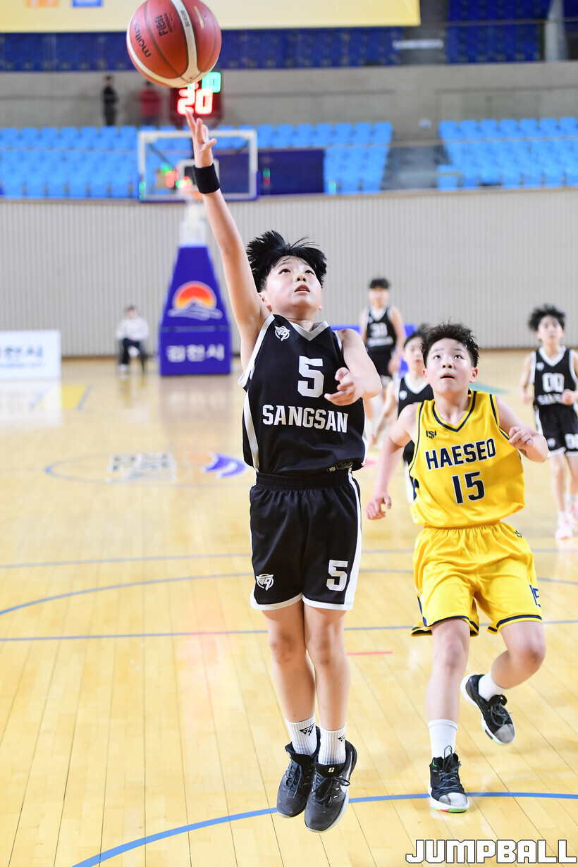 [점프볼=김천/박상혁 기자] 14일 김천체육관에서 열린 아이에스동서 제25회 협회장배 전국초등농구대회 1일차 대구해서초와 상산초의 경기, 상산초가 대구해서초에 76-59로 승리했다.