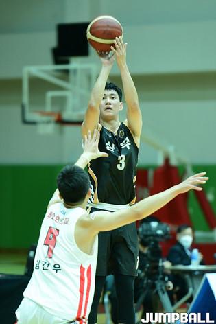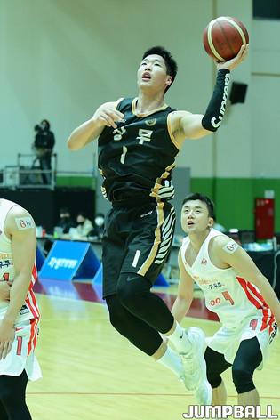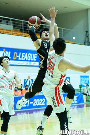 27일 경기도 이천에 위치한 LG 챔피언스파크에서 열린 2021-2022 KBL D리그 한국가스공사와 LG의 경기, 상무 김경원이 훅슛을 시도하고 있다.