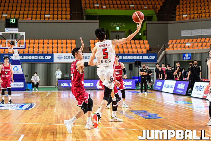 15일 경상북도 상주시 상주실내체육관에서 열린 2021 MG새마을금고 KBL 컵대회 서울 SK와 창원 LG의 경기, SK 김선형이 버저비터를 시도하고 있다.