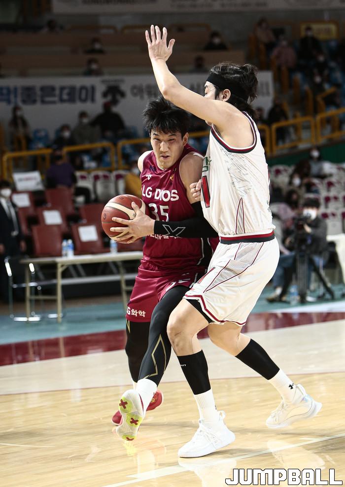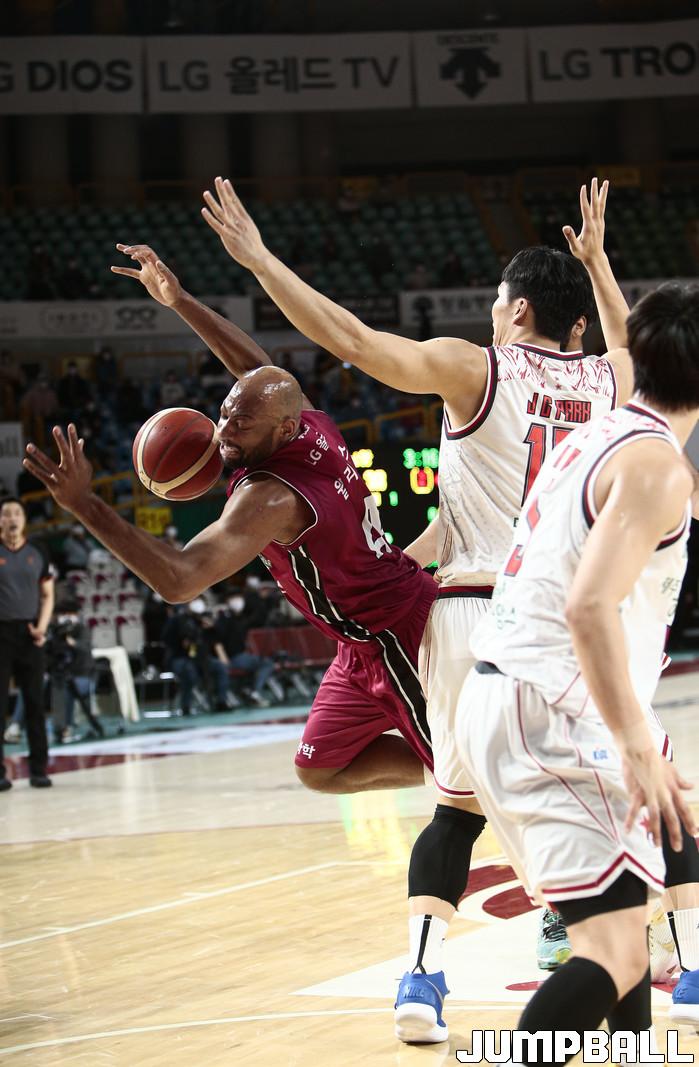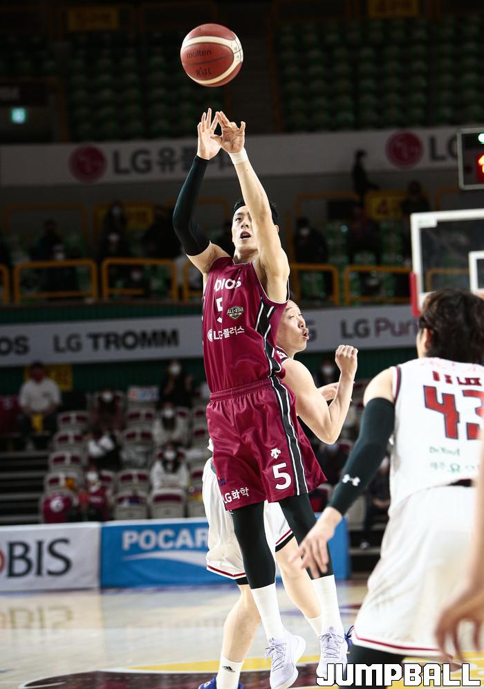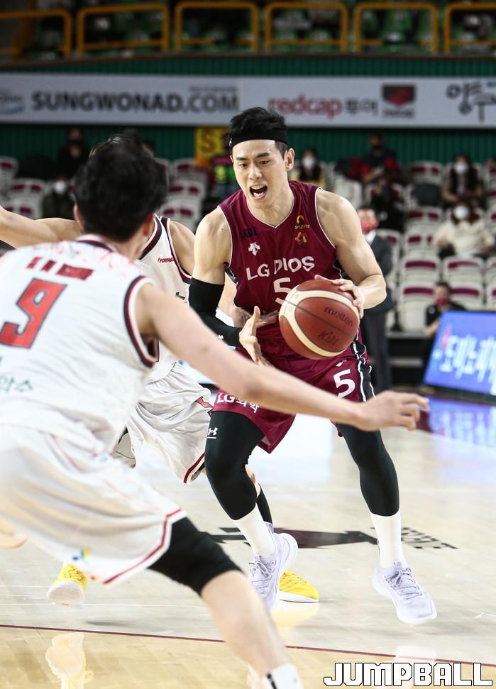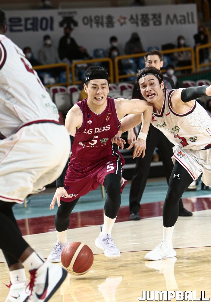 [점프볼=정을호 기자] 20일 창원실내체육관에서 열린 2020-2021 현대모비스 프로농구 창원 LG와 안양 KGC의 경기, 창원 LG가 고양 오리온에 82-75로 승리하였다. 창원 LG와 고양 오리온의 경기화보