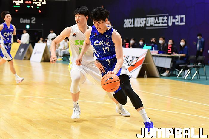 [점프볼=수원/박상혁 기자] 25일 서수원칠보체육관에서 열린 2021 KUSF 대학농구 U-리그 성균관대와 중앙대의 경기, 중앙대 임동언이 돌파를 시도하고 있다.