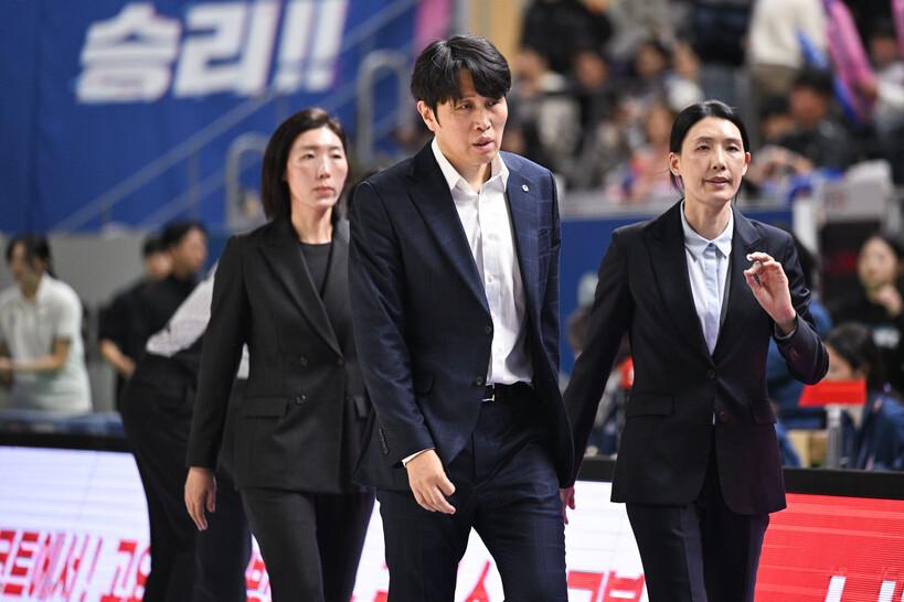 위성우 감독이 이끄는 아산 우리은행은 7일 용인체육관에서 열린 BNK금융 2025~2026 여자프로농구 용인 삼성생명과의 경기에서 62-59로 승리, 3연패에서 벗어났다. 우리은행의 시즌 전적은 2승 5패(6위)다.