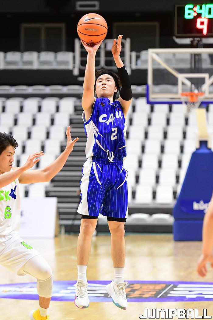 [점프볼=수원/박상혁 기자] 25일 서수원칠보체육관에서 열린 2021 KUSF 대학농구 U-리그 성균관대와 중앙대의 경기, 중앙대 이주영이 3점슛을 시도하고 있다.