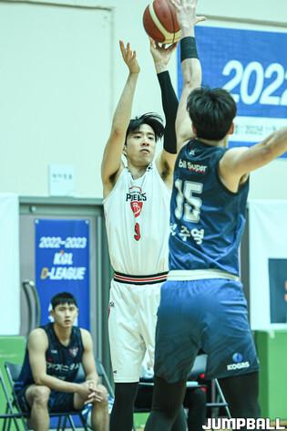 18일 이천 LG챔피언스파크에서 열린 2022-2023 KBL D리그 서울 SK와 전주 KCC의 경기, KCC 김진용과 박세진이 환호하고 있다.
