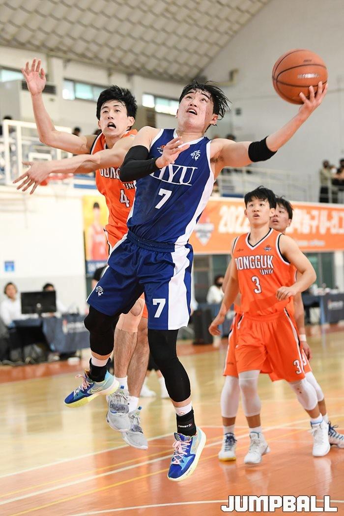 20일 동국대 체육관에서 열린 2022 KUSF 대학농구 U-리그 동국대와 한양대의 경기, 한양대 염재성이 공격을 시도하고 있다.