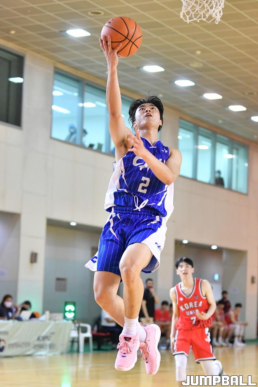 30일 고려대학교 화정체육관내 보조체육관에서 열린 2022 KUSF 대학농구 U-리그 고려대와 중앙대의 경기. 중앙대 이주영이 속공 찬스를 이용해 레이업을 올려넣고 있다.