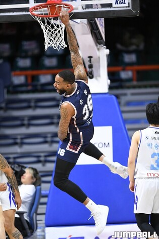 [점프볼=부산/유용우 기자] 31일 부산 사직체육관에서 열린 2025-2026 LG전자 프로농구 부산 KCC과 서울 삼성의 경기, KCC 장재석이 골밑 공격을 성공하고 있다.