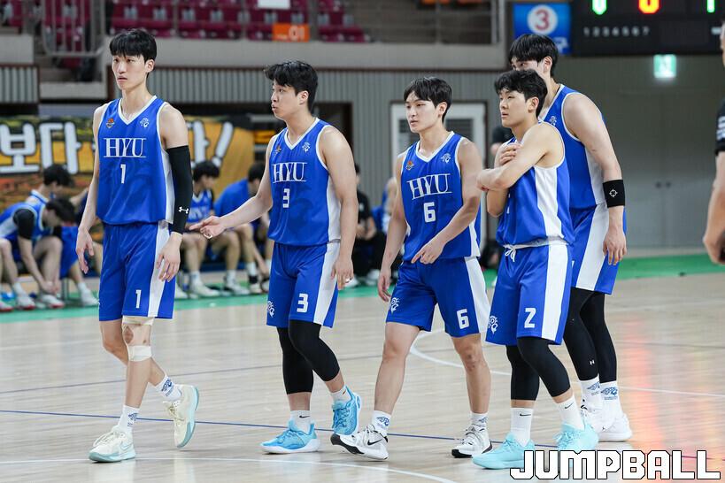 하지만 승리를 향한 한양대의 집념은 강했다. 김주형과 박성재가 3점슛을 터트렸고, 신지원은 골밑에서 공격을 성공시키며 다시 역전에 성공했다. 이후 임동언에게 실점했으나 흔들리지 않았다. 김주형의 중거리슛으로 승기를 잡은 한양대는 수비에서도 집중력을 발휘하며 어렵게 승리를 지켰다.