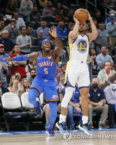 ▶골든스테이트의 에이스 스테픈 커리가 23점 6리바운드 4어시스트로 활약하며 오클라호마시티를 잡았다. 커리와 앤드류 위긴스 데미안 리 세 선수가 나란히 20점 이상을 득점하며 승리했다. 골드스테이트는 전반전 슛 성공률이 39%였지만 3쿼터에는 61%로 치솟으며 3쿼터를 지배해 개막 4연승을 달렸다.