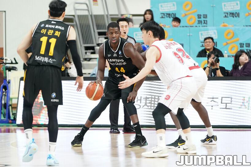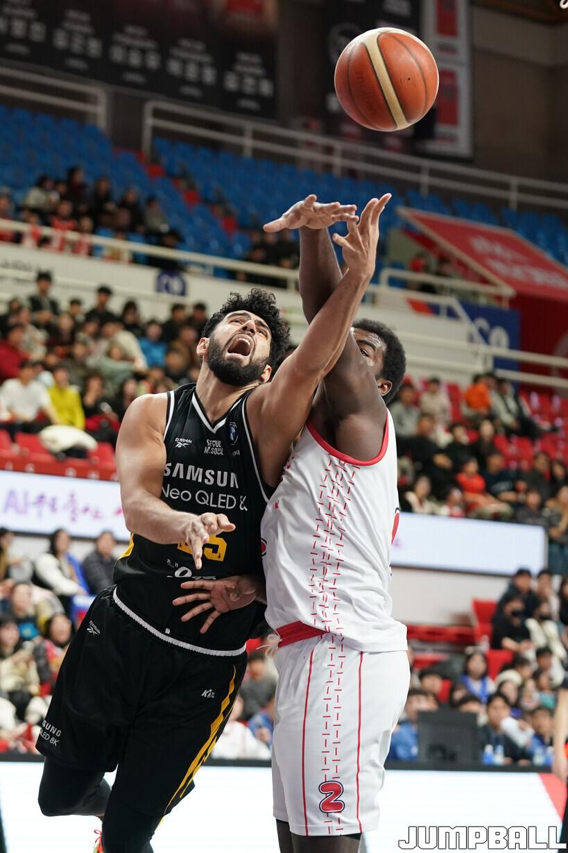[점프볼=울산/유용우 기자] 13일 울산 동천체육관에서 열린 2025-2026 LG전자 프로농구 울산 현대모비스와 서울 삼성의 경기, 삼성은 니콜슨과 칸터가 각각 20점씩 득점하며 84-61로 현대모비스에 원정 승리를 거뒀다. 칸터는 20점 11리바운드 더블더블을 기록, 공수 맹활약하며 팀 승리를 이끌었다.