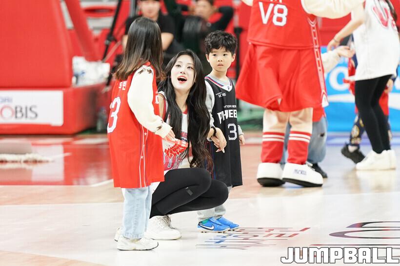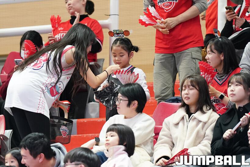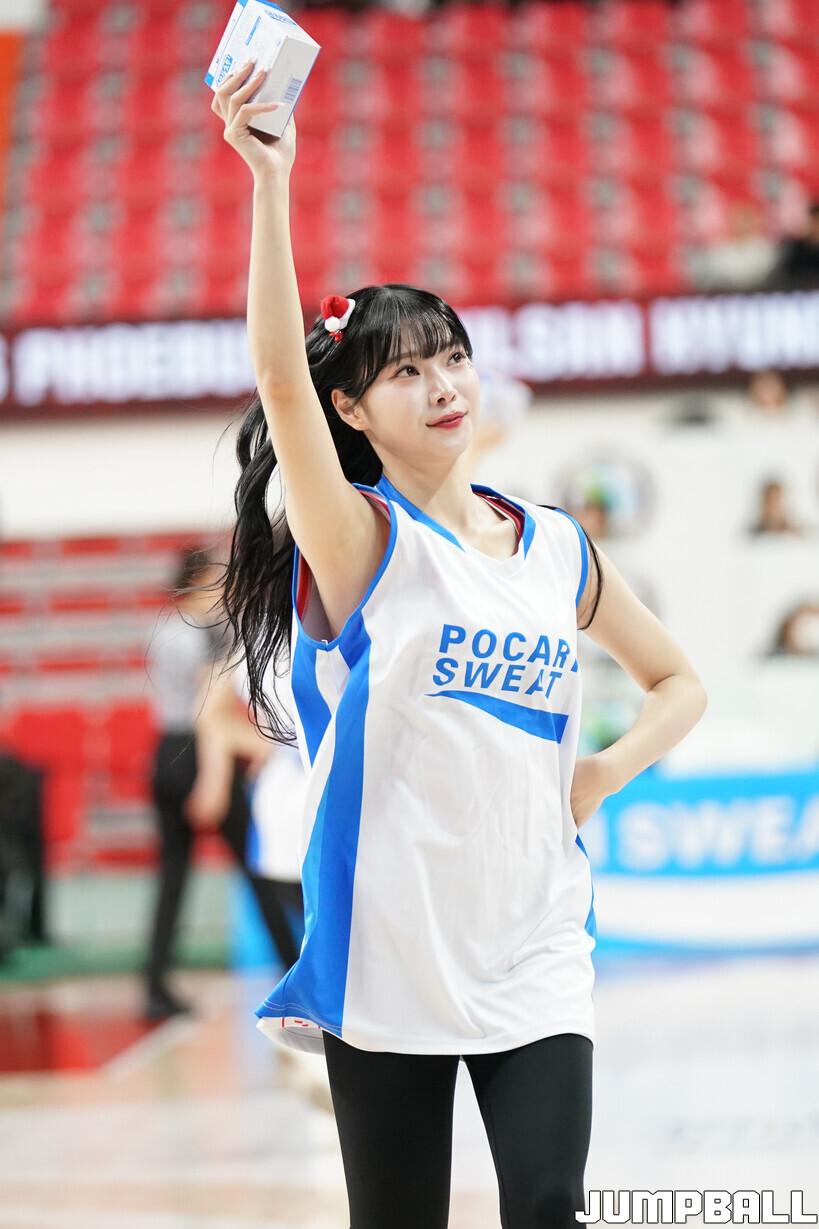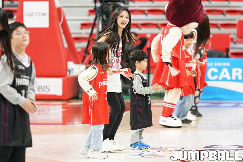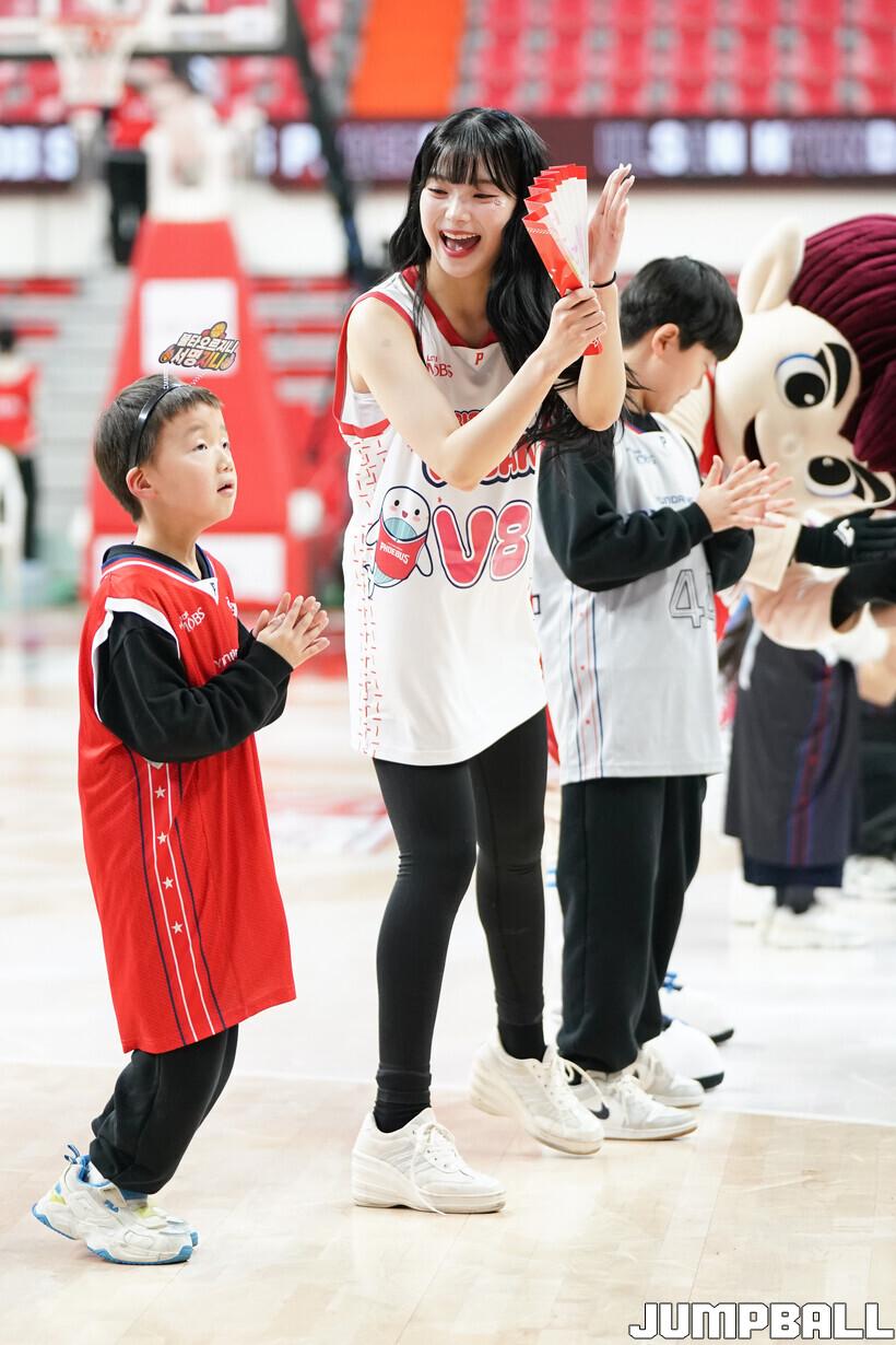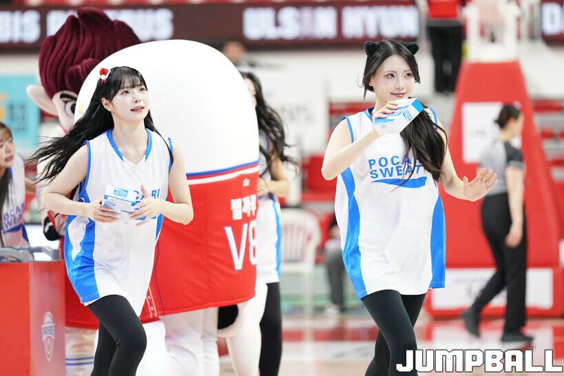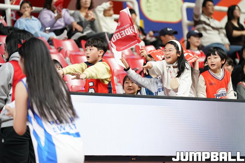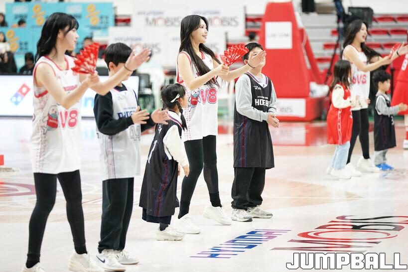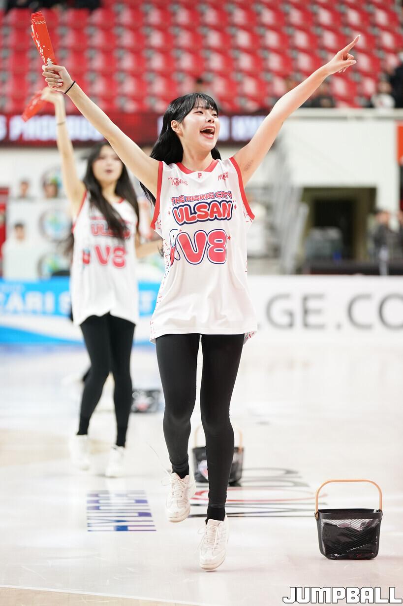 [점프볼=울산/유용우 기자] 13일 울산 동천체육관에서 열린 2025-2026 LG전자 프로농구 울산 현대모비스와 서울 삼성의 경기, 현대모비스 치어리더들이 현대모비스 홈팬 어린이들과 호흡하며 다채로운 응원전을 펼치고 있다.