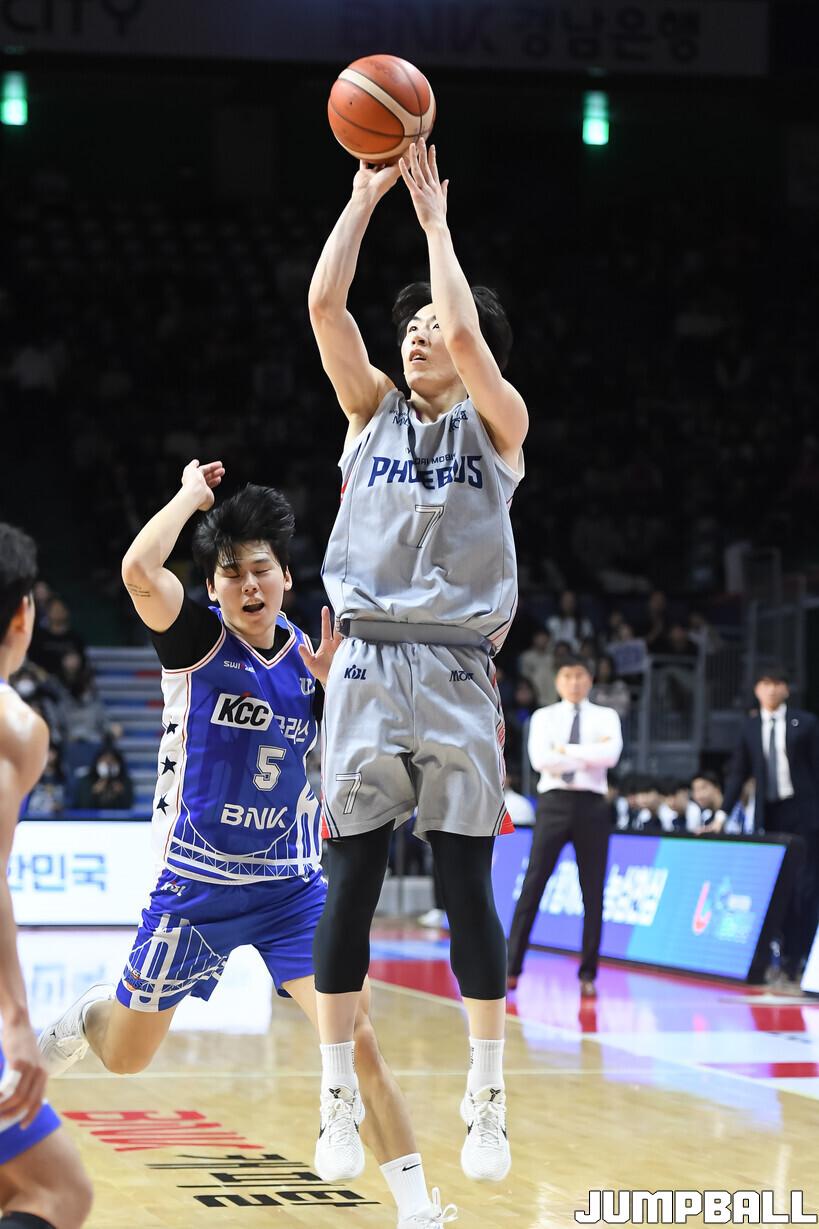 서명진은 올 시즌 26경기 평균 31분 22초를 소화했다. 뿐만 아니라 13점 3점슛 2.4개(성공률 44.3%) 역시 커리어하이에 해당하는 수치다. 3점슛은 전체 4위에 올라 있다. 서명진이 3점슛을 넣지 못한 경기는 10월 3일 원주 DB, 11월 9일 안양 정관장 단 2경기에 불과하다.