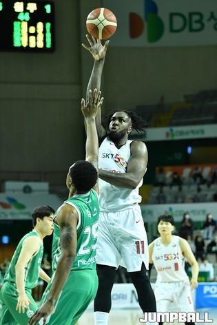[점프볼=원주/유용우 기자] 13일 원주 종합체육관에서 열린 2020-2021 현대모비스 프로농구 원주 DB와 서울 SK의 경기, SK 최부경이 경기 막판 덩크를 성공하고 있다.