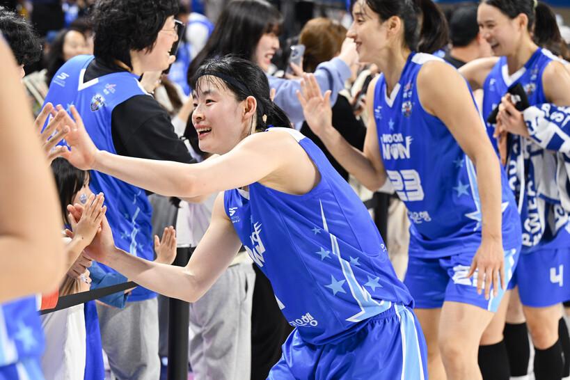 이어 강계리는 이명관의 이야기가 나온 만큼, 함께 인터뷰실에 동행한 동생 이명관에 대한 칭찬 릴레이를 이어갔다. “단비 언니는 우리 팀의 기둥이다. 어느 정도의 무게를 짊어갈 텐데… 앞선 2경기까지는 단비 언니도 페이스를 잘 못 찾았다. 그래서 내가 명관이에게 그랬다. ‘명관아! 이제는 너가 해야한다!’라고 말이다. 아주 잘해줬다. 예뻐 죽겠다.” 언니의 칭찬에 부끄러워진 이명관이 머쓱한 웃음을 짓는 순간이었다.
