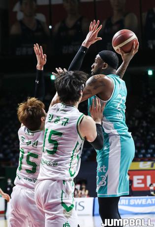 [점프볼=윤민호 기자] 27일 부산 사직실내체육관에서 열린 2020-2021 현대모비스 프로농구 부산 KT와 원주 DB의 경기