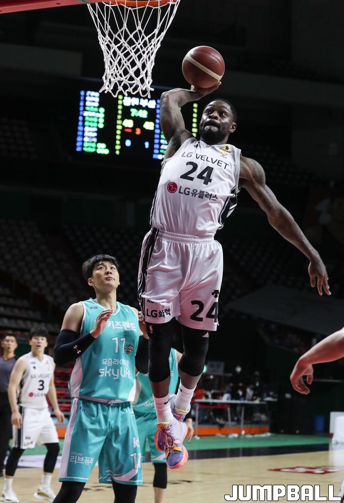 창원 LG 세이커스는 24일 사직실내체육관에서 열린 2020-2021 현대모비스 프로농구 정규리그 부산 KT 소닉붐과의 경기에서 81-76로 이겼다
