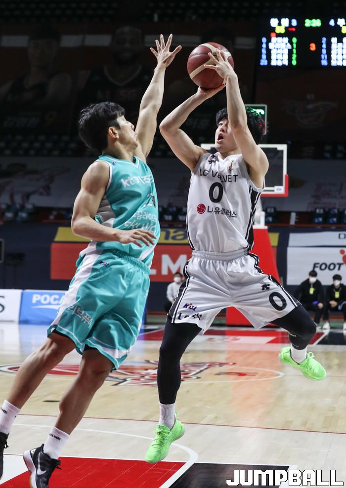 [점프볼=윤민호 기자]창원 LG 세이커스는 24일 사직실내체육관에서 열린 2020-2021 현대모비스 프로농구 정규리그 부산 KT 소닉붐과의 경기에서 81-77로 이겼다.