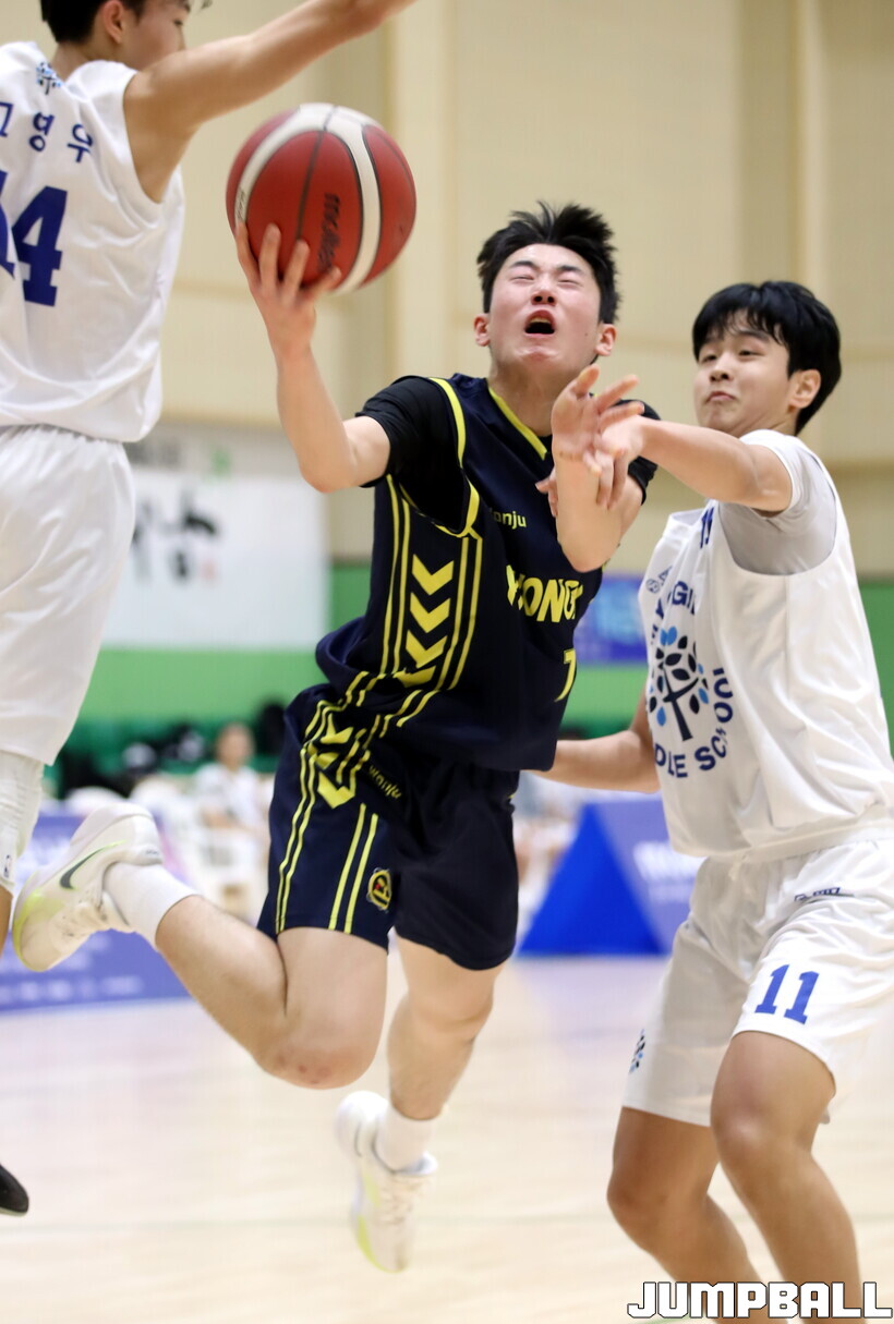 14일 전남 해남 구교체육관에서 열린 제63회 춘계전국남녀 중고농구연맹전 남중부 예선 첫 날 경기, 원주 평원중이 경기 초반 부터 강력한 압박 수비를 앞세워 88-56으로 명지중을 완파하고 첫 승을 기록했다.