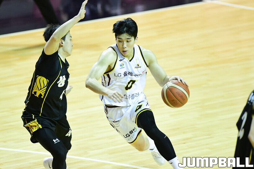 [점프볼=용인/박상혁 기자] 1일 경희대학교 국제캠퍼스 선승관에서 열린 2025-2026 KBL D리그 창원 LG와 상무의 결승전 경기, LG 김종호가 돌파를 시도하고 있다.