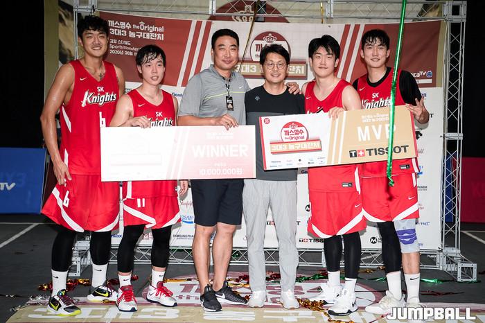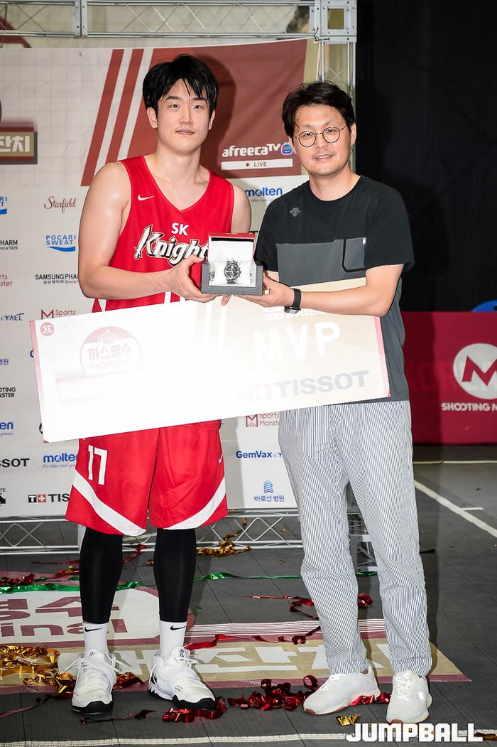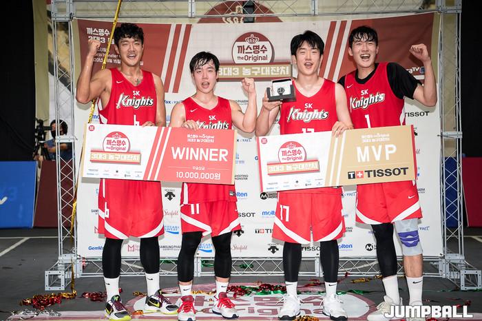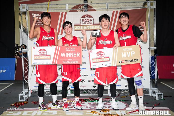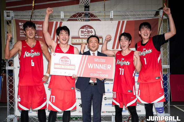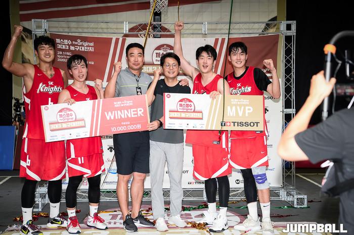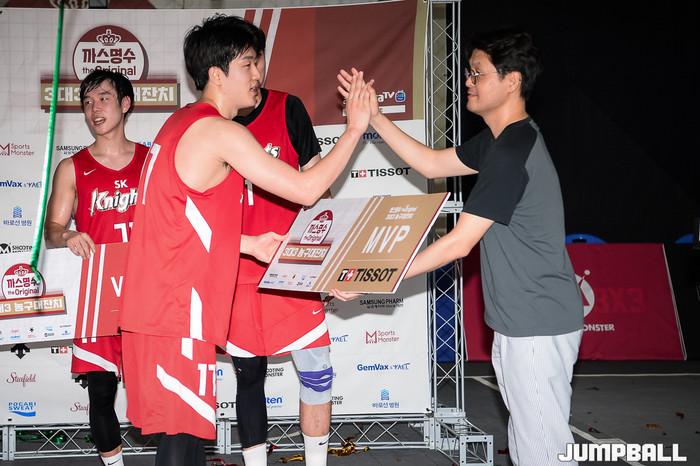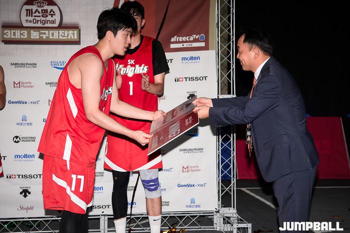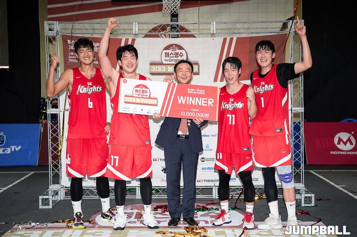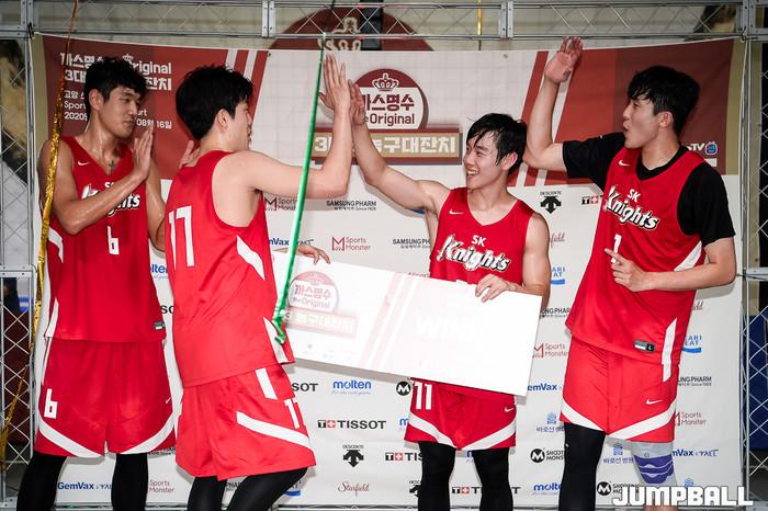 [점프볼=고양/유용우 기자] 16일 스타필드 고양 루프탑에 위치한 스포츠 몬스터 코트에서 열린 '까스명수 THE ORIGINAL 3대3농구대잔치' 한솔레미콘과 SK의 결승 경기, SK가 19-11로 승리하며 우승을 차지하였다.