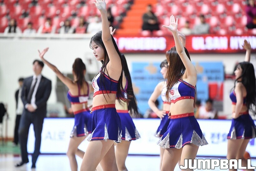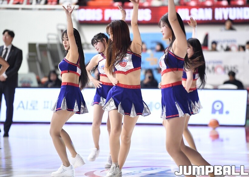 [점프볼=울산/유용우 기자] 28일 울산동천체육관에서 열린 2025-2026 LG전자 프로농구 울산 현대모비스와 서울 SK의 경기, 현대모비스 치어리더들이 열정적인 응원을 펼치며 홈팬들의 함성을 이끌고 있다.
