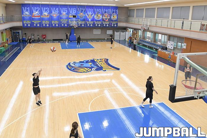 [점프볼=서울/박상혁 기자] 5일 서울시 성북구 장위동에 위치한 우리은행 연습체육관에서 우리은행 선수단이 다시 한번 우승을 향해 구슬땀을 흘리고 있다. 우리은행 선수단이 3점슈팅으로 훈련을 마무리 하고 있다.