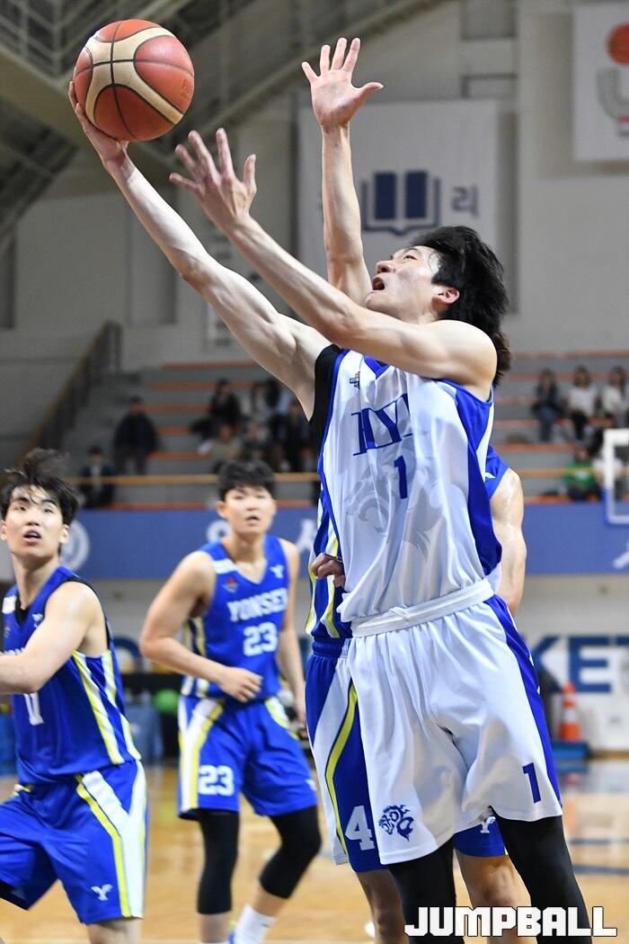 26일 연세대 신촌캠퍼스체육관에서 열린 2023 KUSF 대학농구 U-리그 연세대와 한양대의 경기, 한양대 박민재가 공격을 시도하고 있다. [점프볼=신촌/유용우 기자]