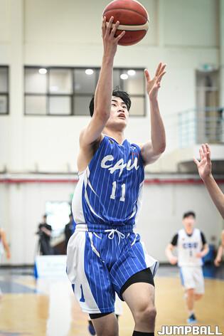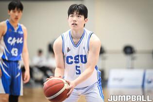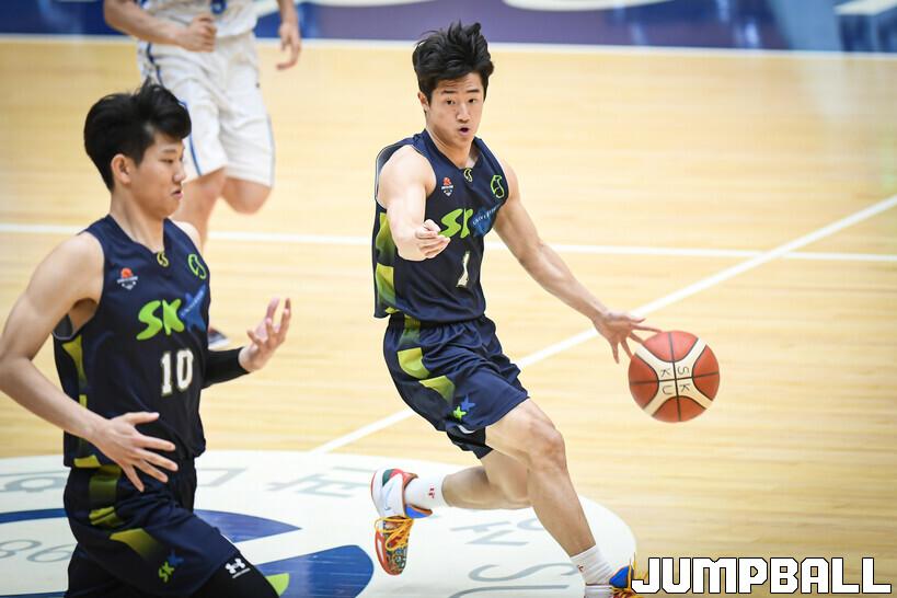 31일 성균관대학교 자연과학캠퍼스 수성관에서 열린 2023 KUSF 대학농구 U-리그 성균관대와 단국대의 경기, 성균관대 민기남이 속공 상황에서 지시를 하고 있다.