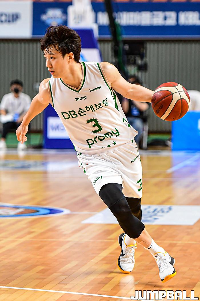 15일 경상북도 상주시 상주실내체육관에서 열린 2021 MG새마을금고 KBL 컵대회 원주 DB와 한국가스공사의 경기, DB 허웅이 돌파를 시도하고 있다.