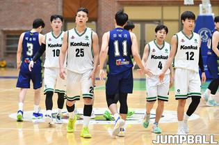 18일 고려대 화정체육관에서 열린 2022 KUSF 대학농구 U-리그 고려대와 단국대 경기, 고려대 박준형이 레이업슛을 시도하고 있다.