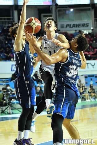 [점프볼=전주/유용우 기자] 06일 전주실내체육관에서 열린 2020-2021 현대모비스 프로농구 전주 KCC와 창원 LG의 경기, LG가 97-75로 KCC에 원정 승리했다.
