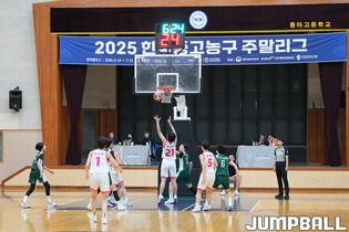 [점프볼=부산/정수정 인터넷기자] 21일 부산 동아고 체육관에서 열린 ‘2025 한국중고농구 주말리그’ 여고부 경상 D권역 마산여고와 화봉고의 경기에서 마산여고가 65-36으로 승리했다.