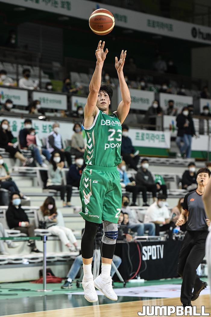 [점프볼=원주/박상혁 기자] 18일 원주종합체육관에서 열린 2020-2021 현대모비스 프로농구 원주 DB와 서울 SK의 경기, DB 배강률이 3점슛을 시도하고 있다.