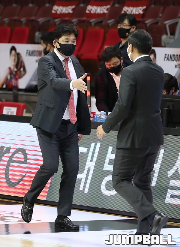[점프볼=안양/백승철 기자] 안양 KGC인삼공사는 23일 안양실내체육관에서 열린 2020-2021 현대모비스 프로농구 창원 LG와의 경기에서 88-83으로 승리했다.