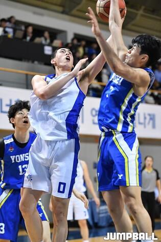 26일 연세대 신촌캠퍼스체육관에서 열린 2023 KUSF 대학농구 U-리그 연세대와 한양대의 경기, 연세대 유기상이 돌파하며 레이업을 올리고 있다. [점프볼=신촌/유용우 기자]
