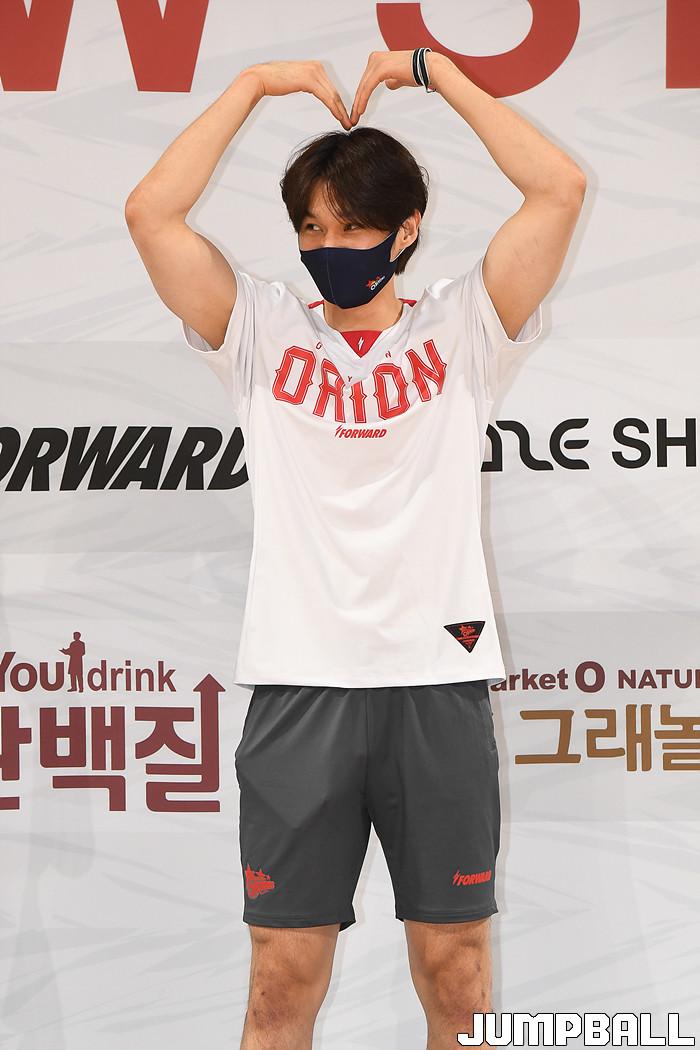 [점프볼=고양/박상혁 기자] 4일 고양체육관에서 2020-2021시즌 오리온 온택트 출정식 및 팬미팅이 열렸다. 오리온 이대성이 원정 슈팅복을 입고 팬들을 향해 하트를 보내고 있다.