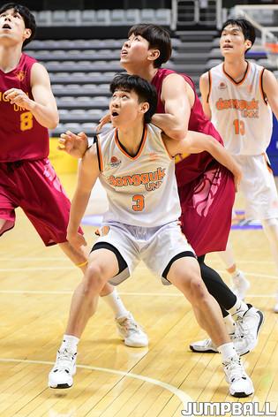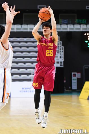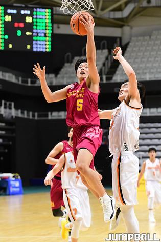 [점프볼=수원/박상혁 기자] 26일 서수원칠보체육관에서 열린 2021 KUSF 대학농구 U리그 동국대와 경희대 경기, 경희대 박민채가 골밑까지 들어와 슛을 시도하고 있다.