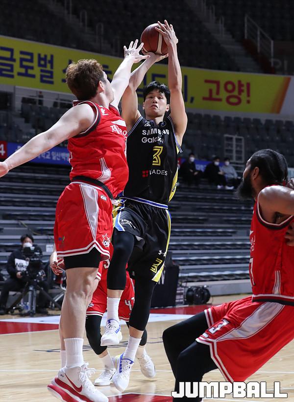 [점프볼=고양/백승철 기자] 31일 오후 고양체육관에서 열린 2020-2021 현대모비스 프로농구 고양 오리온과 서울 삼성의 경기, 삼성 장민국이 슛을 시도하고 있다.