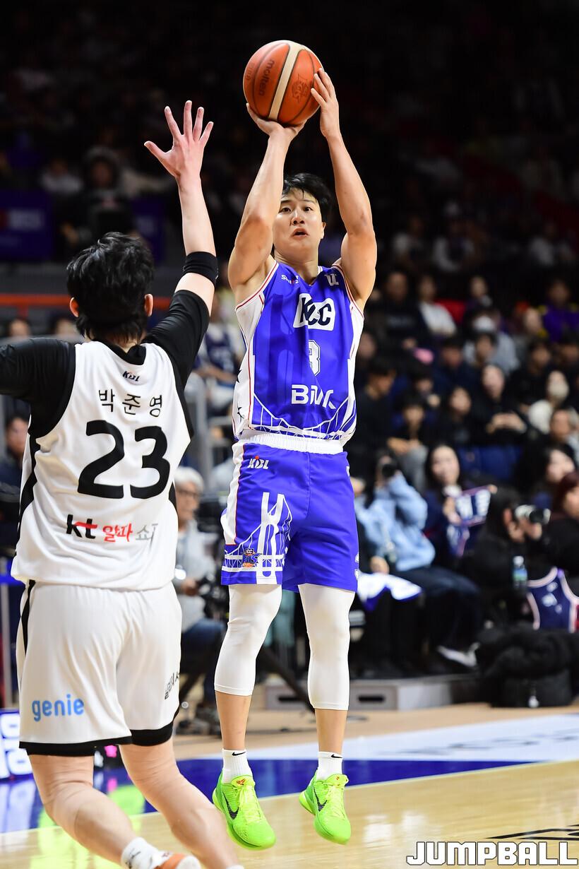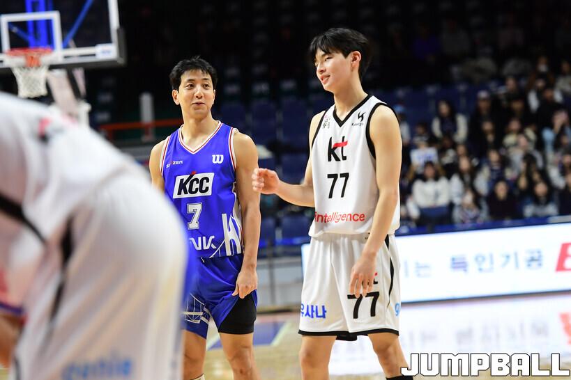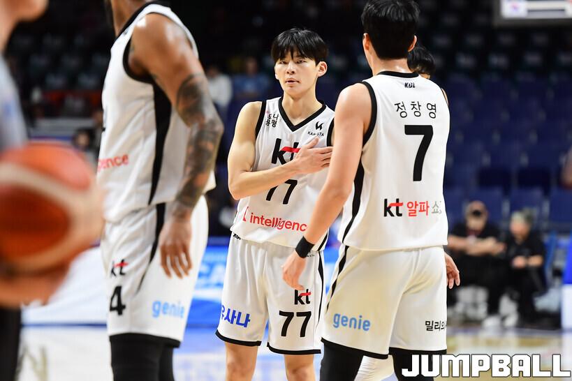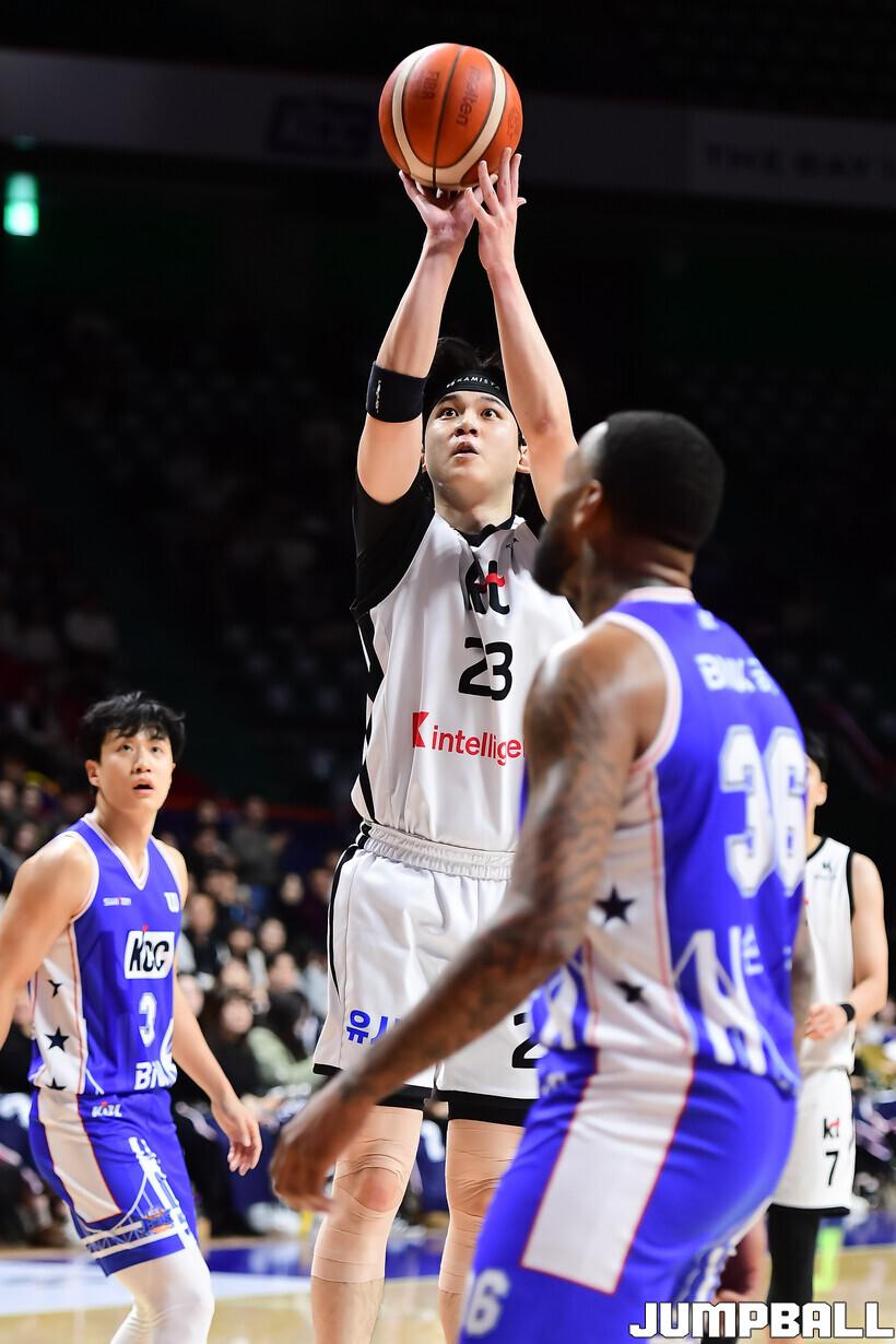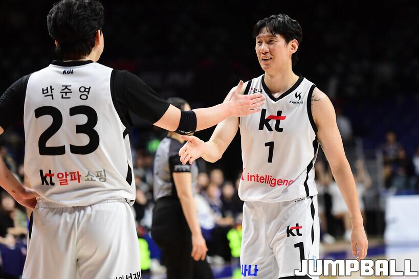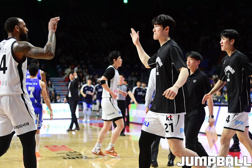 [점프볼=부산/박상혁 기자] 21일 부산사직체육관에서 열린 2025-2026 LG전자 프로농구 부산 KCC와 수원 KT의 경기, KCC가 선수들의 고른 활약으로 KT에 94-87로 승리했다.