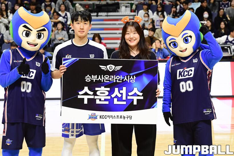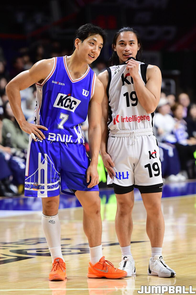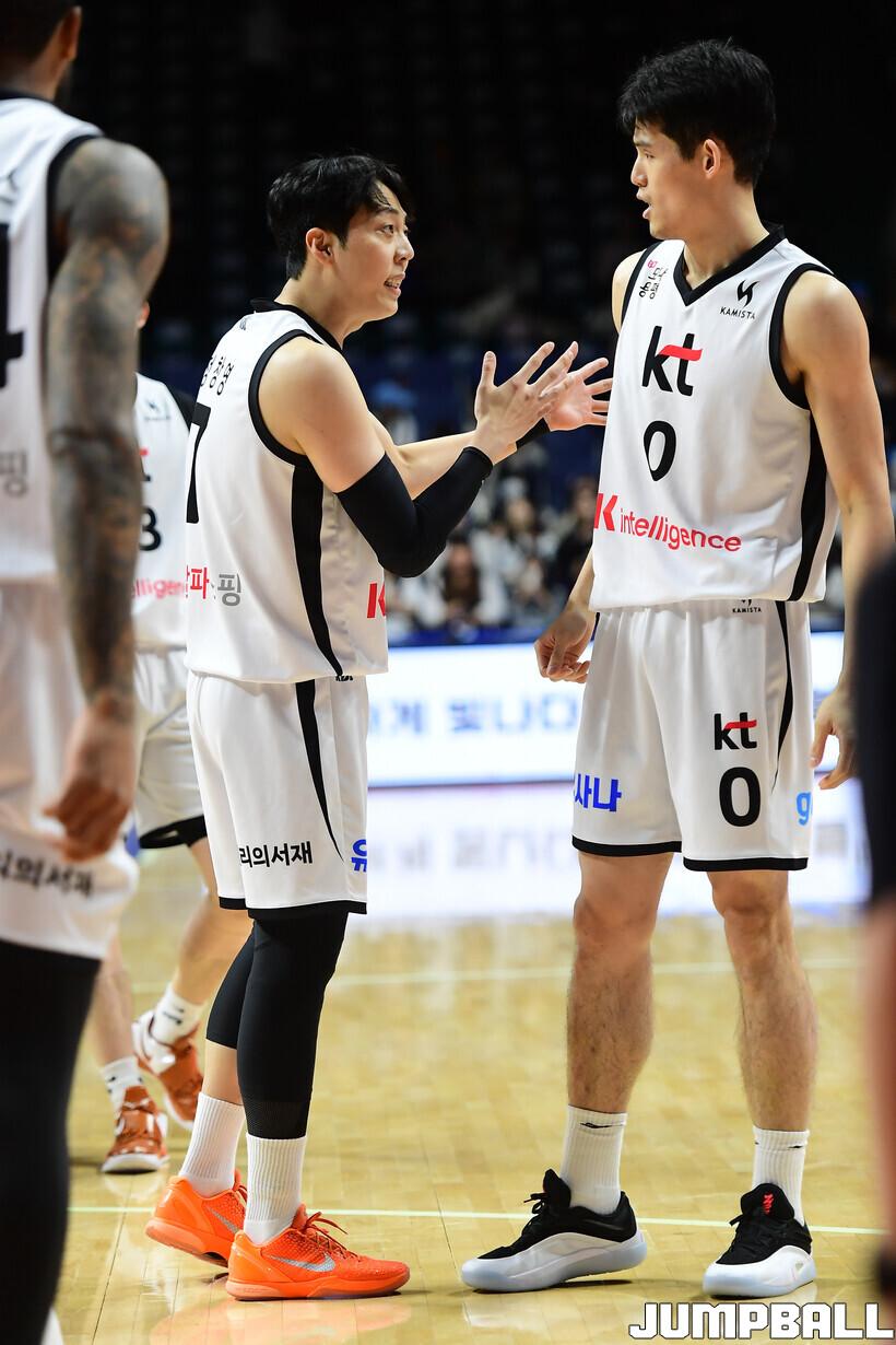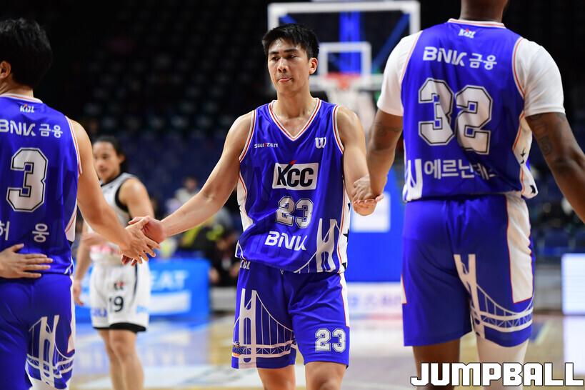 [점프볼=부산/박상혁 기자] 21일 부산사직체육관에서 열린 2025-2026 LG전자 프로농구 부산 KCC와 수원 KT의 경기, KCC가 선수들의 고른 활약으로 KT에 94-87로 승리했다.