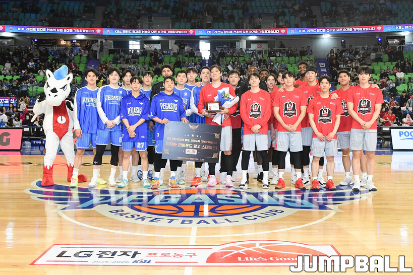 [점프볼=대구/박상혁 기자] 14일 대구체육관에서 열린 2025-2026 LG전자 프로농구 대구 한국가스공사와 울산 현대모비스의 경기, 경기 시작 전 현대모비스 함지훈의 대구 은퇴투어를 진행했다.