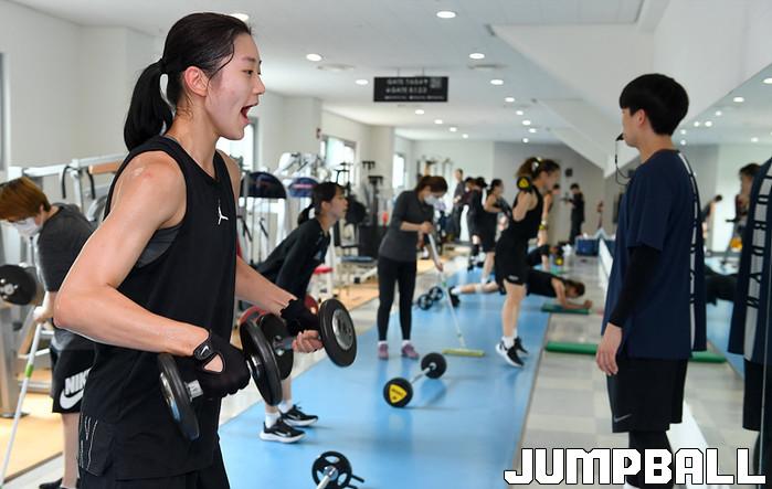 [점프볼=아산/문복주 기자]우리은행은 16일 아산이순신체육관에서 오전에 서킷 트레이닝으로 자신의 한계를 극복하는 체력훈련과 지구력 트레이닝으로 근육과 순환기관은 더욱 강해지며 더 많은 에너지를 생산하는 장거리달리기 훈련을 소화하며 선수들이 몸을 강하게 만들고 있다.
