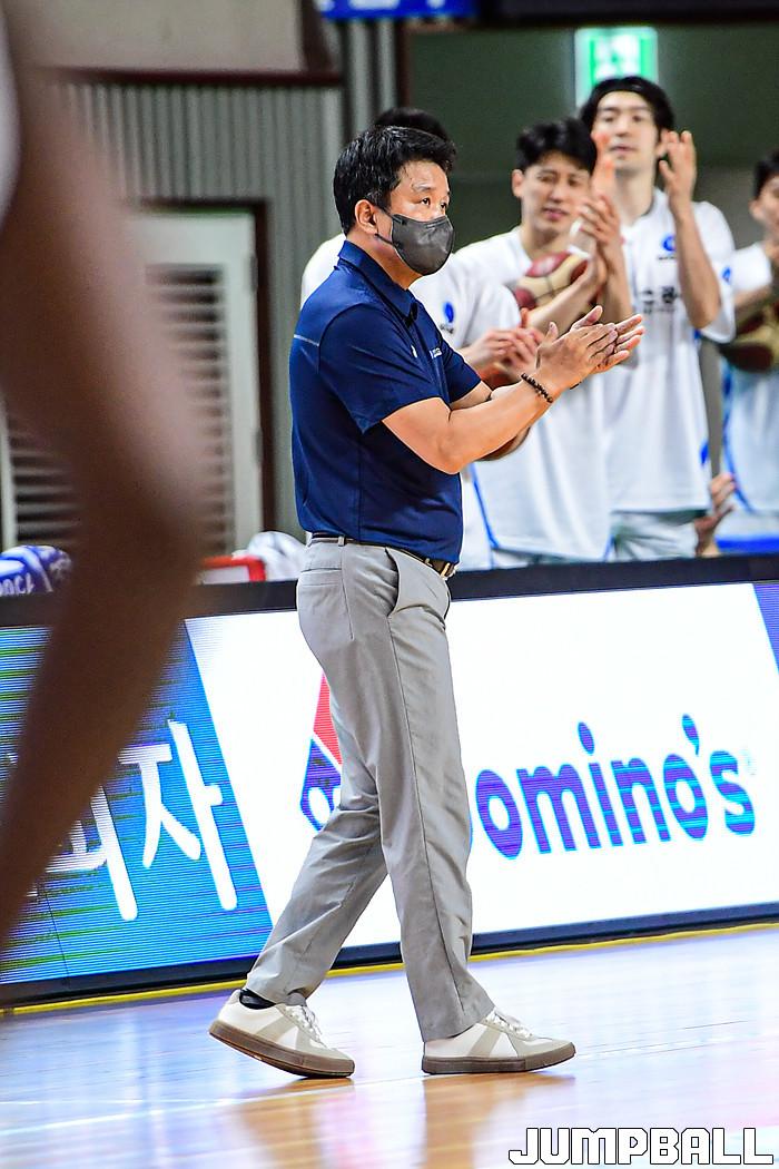 [점프볼=상주/박상혁 기자] 11일 경상북도 상주시 상주실내체육관에서 열린 '2021 MG새마을금고 KBL컵 대회' 한국가스공사와 상무 경기, 한국가스공사 유도훈 감독이 선수들을 독려하고 있다.