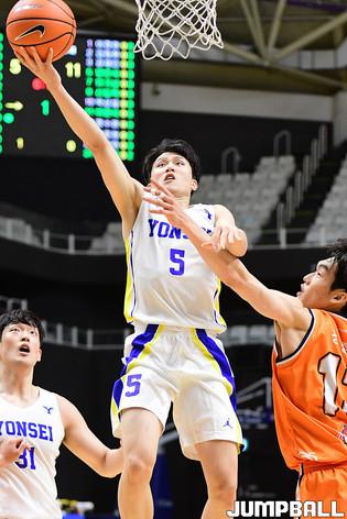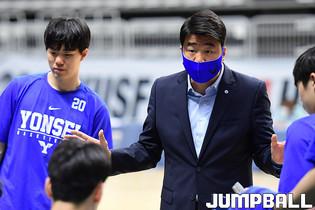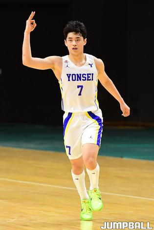 [점프볼=수원/박상혁 기자] 4일 서수원칠보체육관에서 열린 2021 KUSF 대학농구 U리그 연세대와 동국대의 경기, 연세대 신승민과 이정현, 양준석이 환호하고 있다.