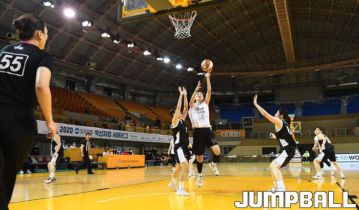 [점프볼=청주/문복주 기자] 17일 청주체육관에서 열린 '2020 우리은행 박신자컵 서머리그' 대학선발과 신한은행의 경기, 신한은행 이주영이 골밑을 파고들어 골밑슛을 시도하고 있다.