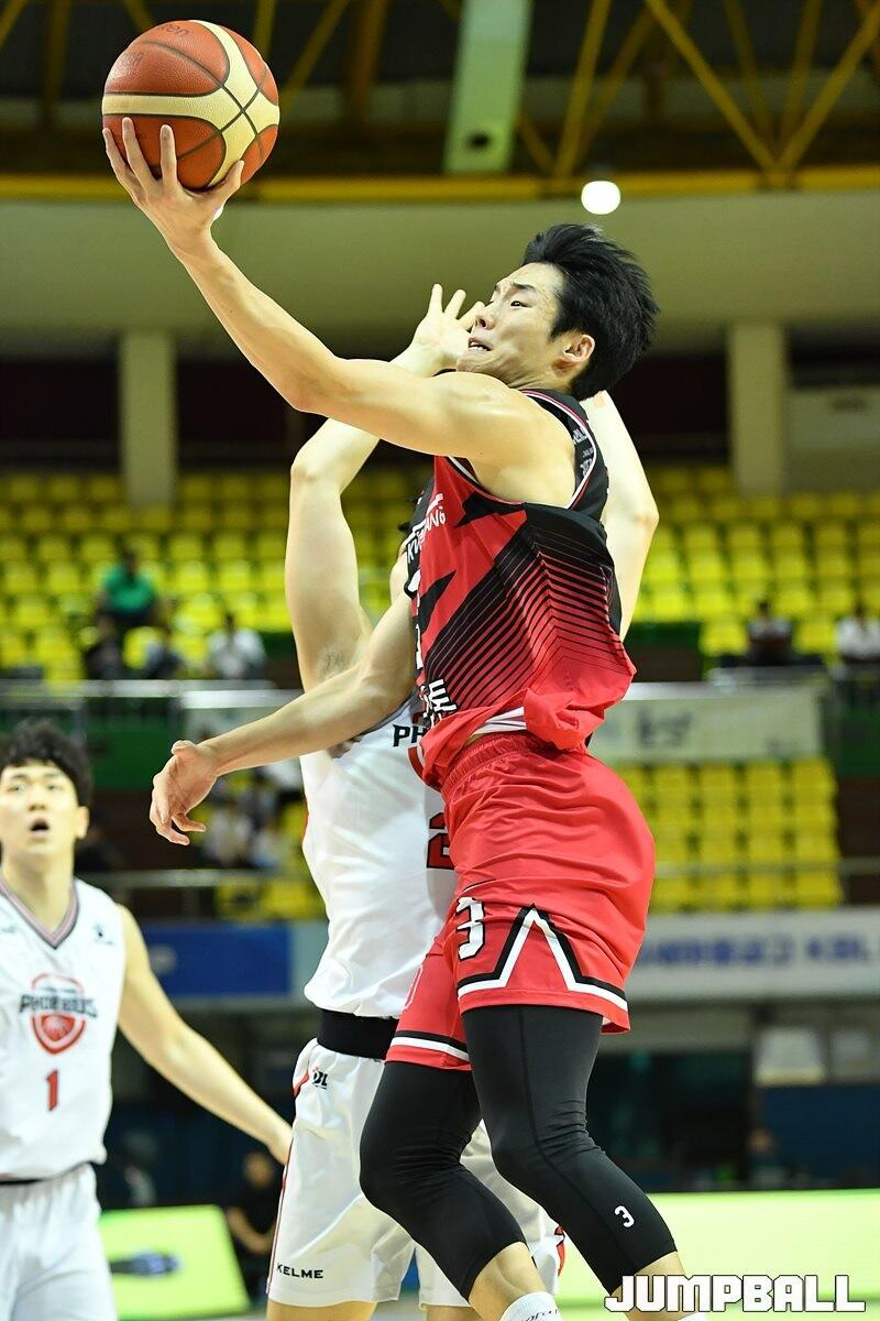 9일 군산월명체육관에서 열린 2023 MG새마을금고 KBL 컵대회 정관장과 현대모비스의 예선 경기, 정관장 정준원이 레이업을 시도하고 있다. [점프볼=군산/유용우 기자]